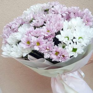≈ 101 белая ромашка – 11 веток хризантем с оформлением
